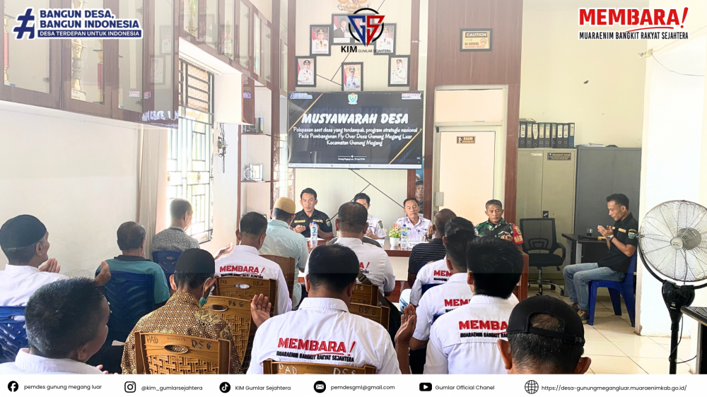 Badan Permusyawaratan Desa (BPD) Desa Gunung Megang Luar melaksanakan Musyawarah Desa dalam rangka pembahasan dan persetujuan pelepasan aset desa sebagai bagian dari dukungan terhadap Program Strategis Nasional pembangunan Fly Over.