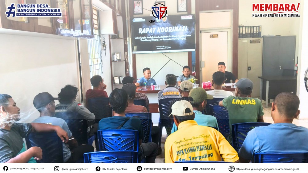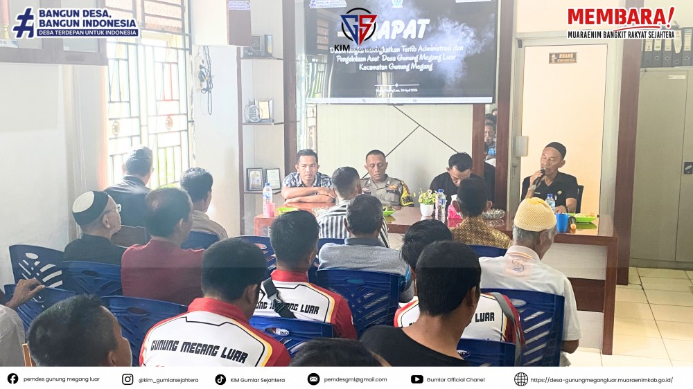 Melalui rapat ini, diharapkan seluruh pihak yang terlibat dapat berkontribusi aktif dalam memberikan data dan informasi yang valid, sehingga tercipta tata kelola aset desa yang akuntabel dan berkelanjutan demi kepentingan masyarakat Desa Gunung Megang Luar.